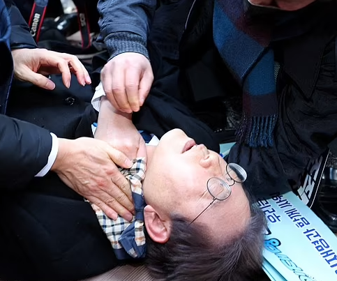 وذكرت وكالة يونهاب للأنباء، أن زعيم الحزب الديمقراطي المعارض الرئيسي نُقل إلى المستشفى.