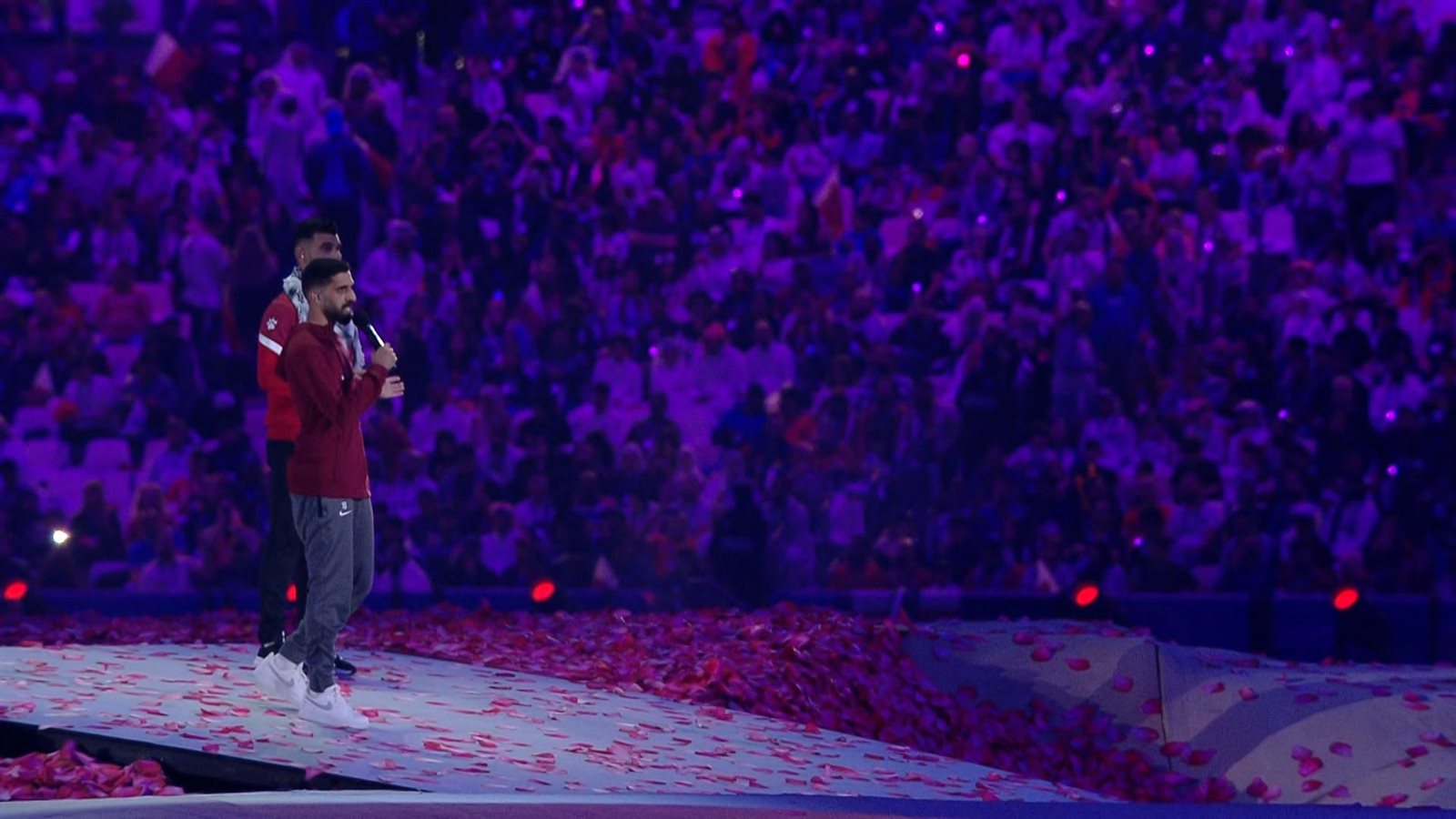 جرى العُرف في بطولة أسيا أن يؤدي كابتن الدولة المستضيفة للبطولة قسم البطولة، إلا أن حسين الهيدوسي قائد منتخب قطر تنازل عن أداء قسم بطولة كأس آسيا لـ مصعب البطاط، قائد منتخب فلسطين في حفل افتتاح البطولة، في لفتة تضامن مع الشعب الفلسطيني.