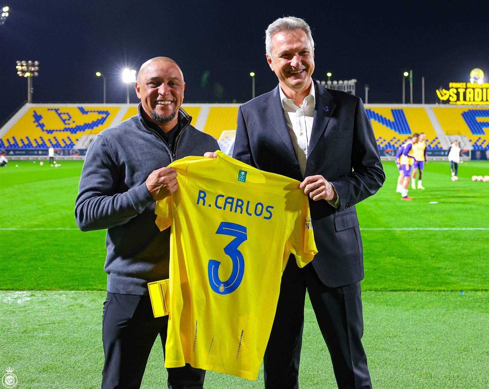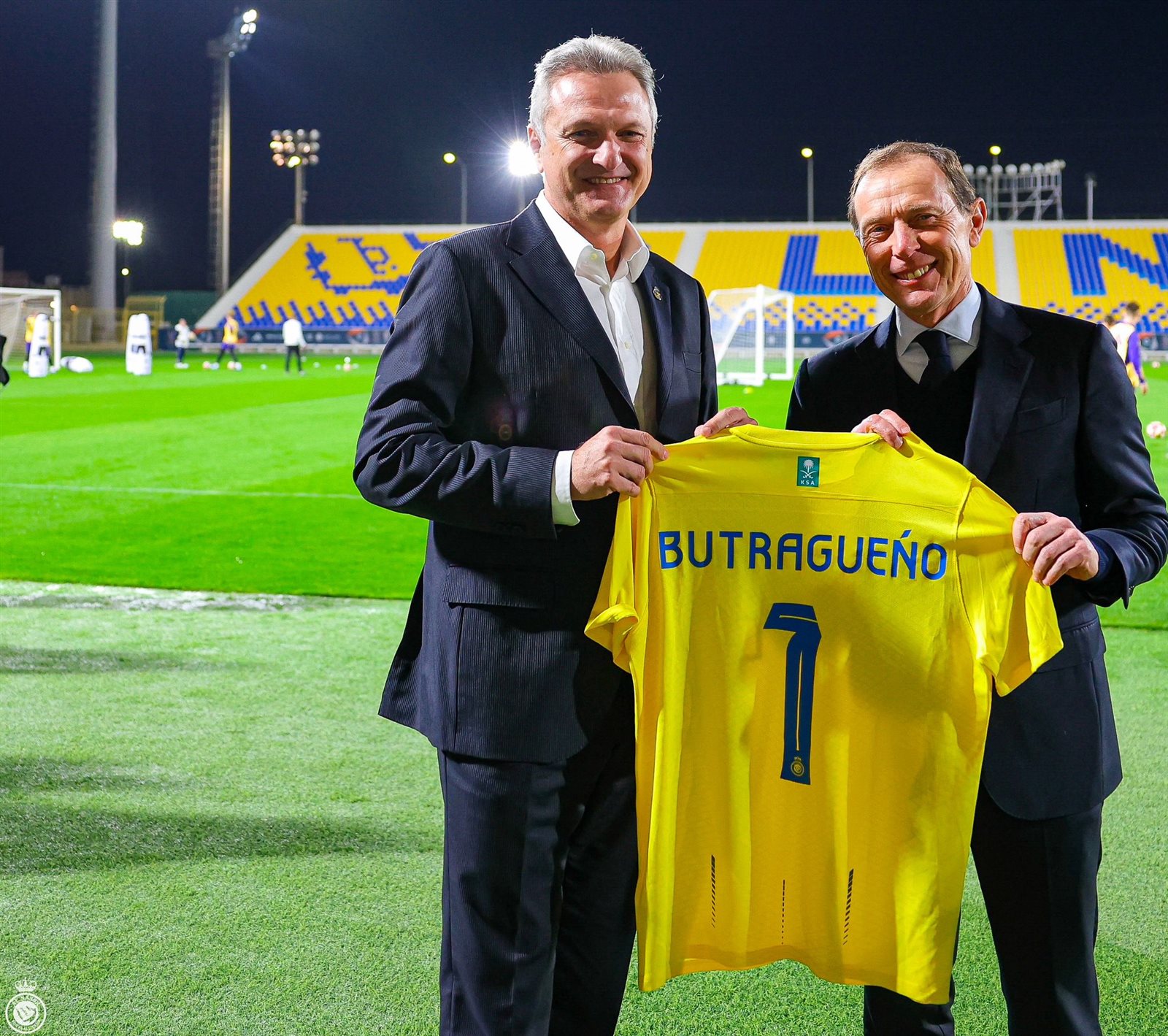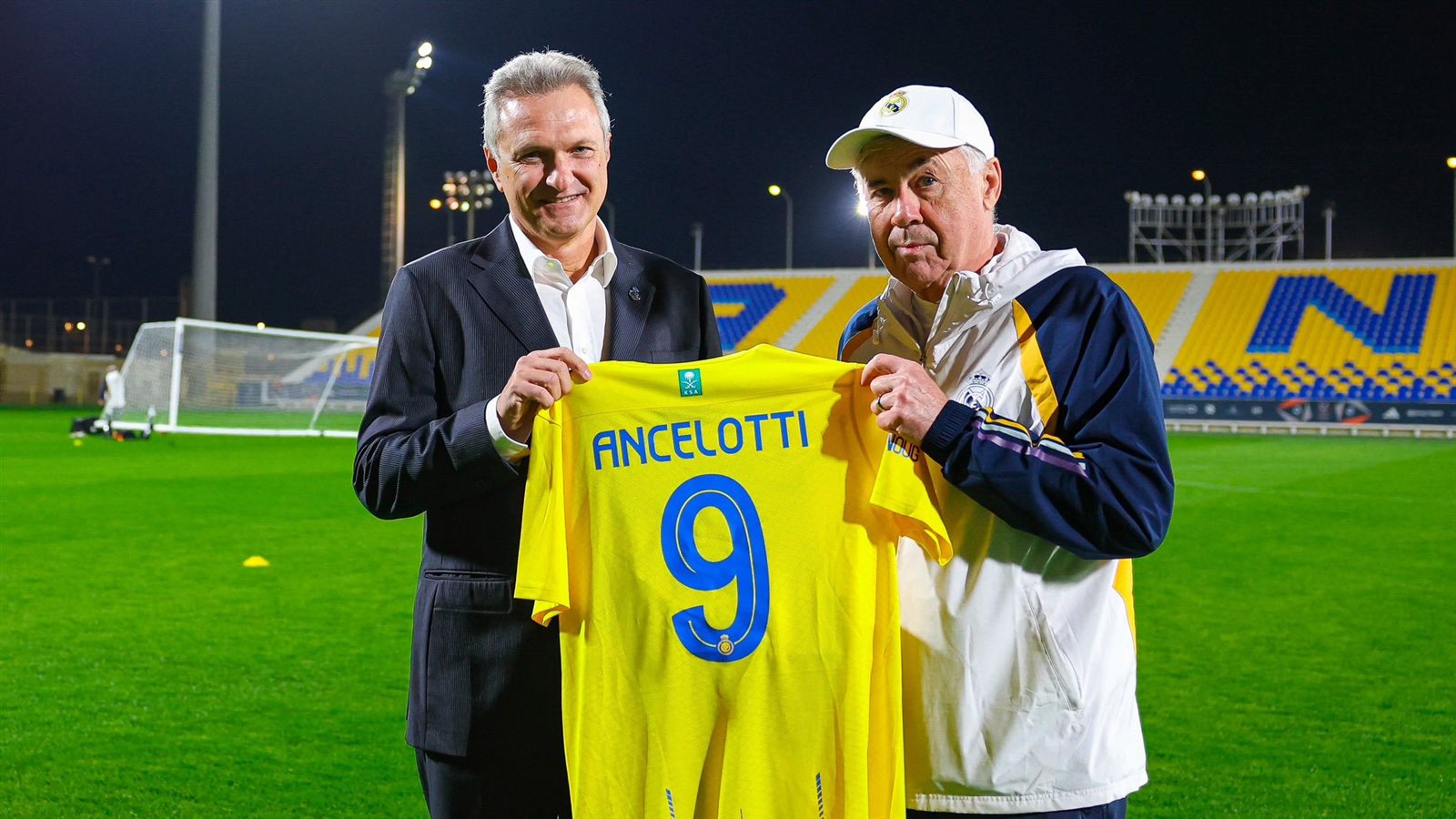 ونشر الحساب الرسمي للنصر على موقع "إكس" للتواصل الاجتماعي اليوم الجمعة، صورا للإيطالي جويدو فينجا، المدير التنفيذي للنادي، وهو يسلم مواطنه أنشيلوتي قميص الفريق الأصفر.