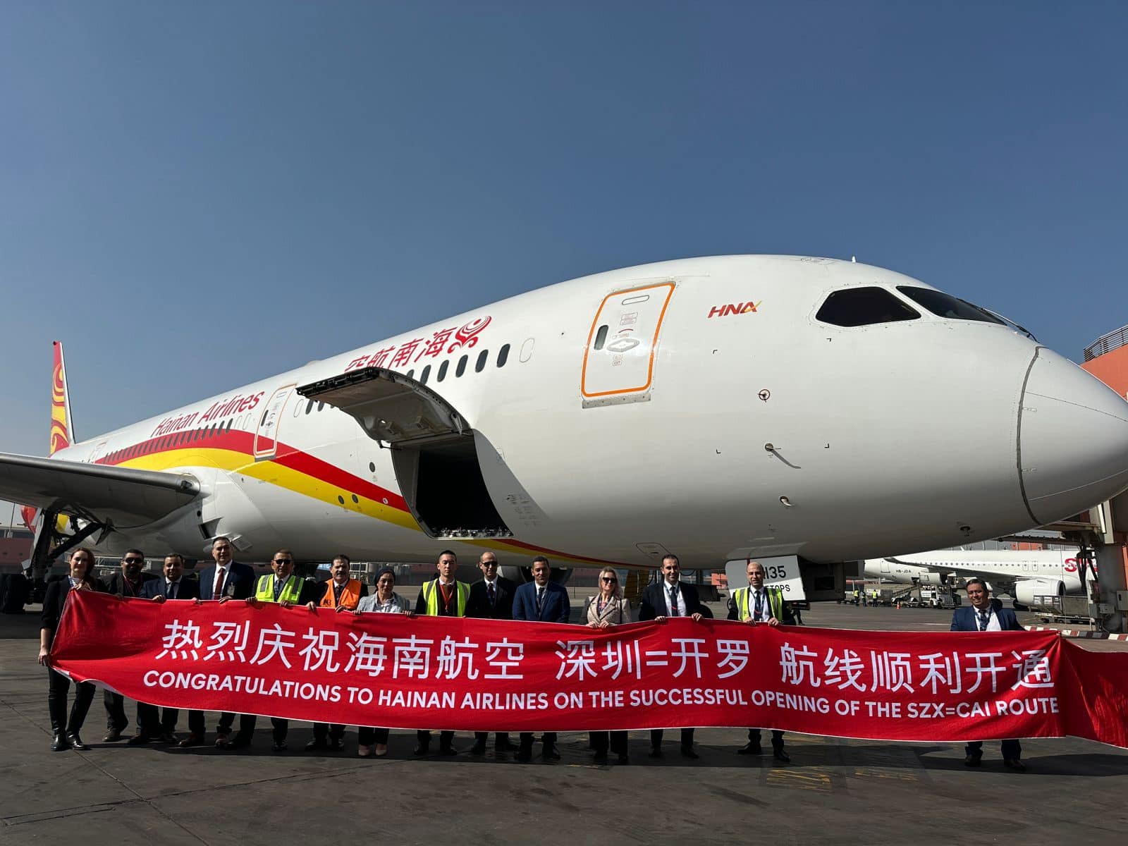 استقبل مطار القاهرة الدولي، اليوم الاثنين، أولى رحلات شركة هاينان الصينية Hainan Airlines، القادمة من مطار شينزين بالصين، وسط حفاوة وتسهيلات خاصة لركاب الرحلة التي نظمتها الشركة الصينية.