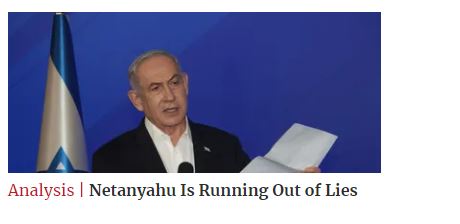 قالت صحيفة هآرتس العبرية إن رئيس الوزراء الإسرائيلي بنيامين نتنياهو فقد السيطرة على كذبه كما يحدث له عندما يكون تحت الضغط، خاصة أنه محشور في الزاوية بسبب ضغوط الدعوة إلى صفقة لإطلاق سراح الأسرى والولايات المتحدة.