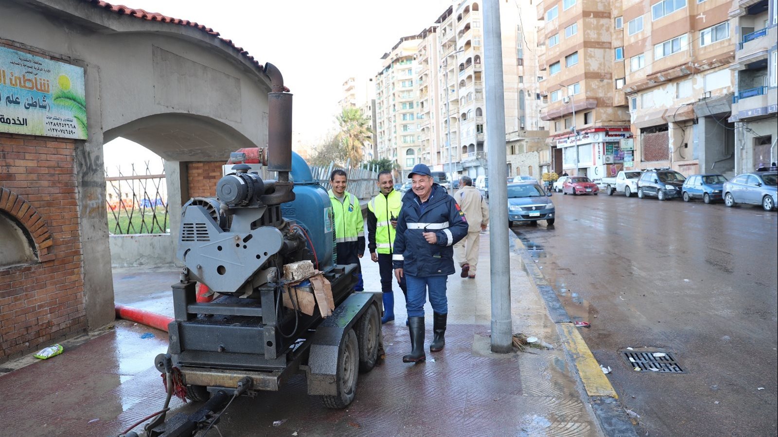 يأتي هذا وفقاً لتكليفات اللواء محمد الشريف محافظ الإسكندرية برفع درجة الاستعداد القصوى والتعامل الفوري مع أي تجمعات لمياه الأمطار.