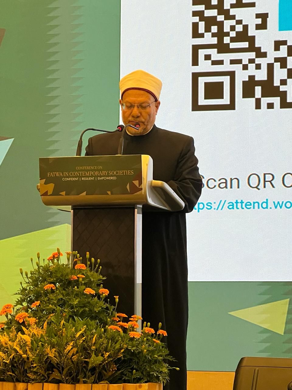 وأضاف خلال كلمته الرئيسية في أعمال المؤتمر الدولي "الفتوى في المجتمعات المعاصرة" والذي يعقد في الفترة من 2-3 فبراير 2024 في العاصمة سنغافورة، أن للفتوى قدرتَها على تقديم تفسيرات سياقية وذات صلة بالشريعة الإسلامية في عالمٍ يتميَّز بالتقدم التكنولوجي والتحولات الاجتماعية، إذ تظهر باستمرار أسئلةٌ أخلاقية ومعنوية جديدة وقضايا مستجدة؛ مثل الاستخدام الأخلاقي للذكاء الاصطناعي والتعقيدات المالية الحديثة وتحديات التقدم الطبي، وهذه المسائل ونحوها تقع خارج دلالات النصوص بصورة تفصيلية؛ لذلك تقدم الفتاوى إرشاداتٍ لضمان بقاء التعاليم الإسلامية موصولة بالعالم المتغير وفي الوقت نفسه تكون قابلة للتطبيق.