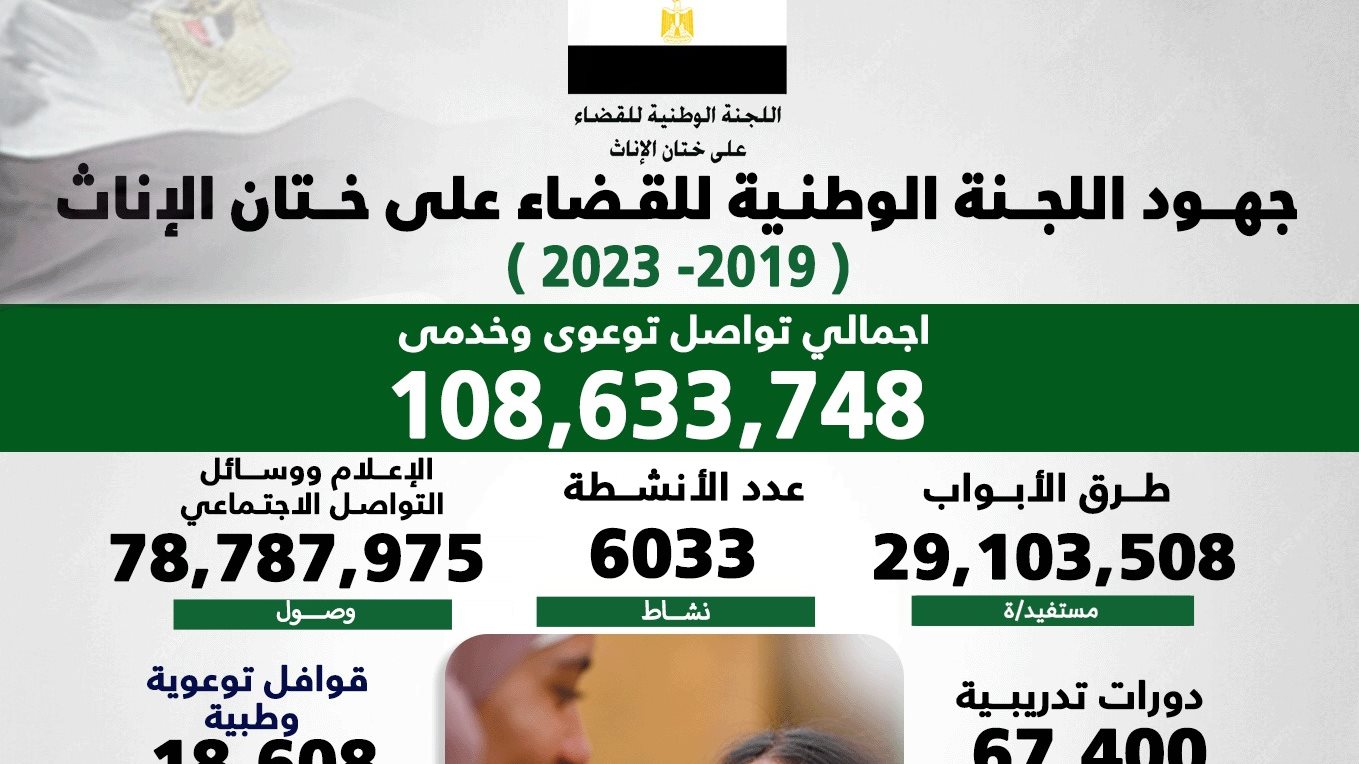 أعد المجلس القومى للمرأة "انفوجراف" يكشف عن جهود اللجنة الوطنية للقضاء على ختان الإناث منذ عام 2019 وحتى نهاية ديسمبر 2023؛ وذلك تزامنا مع اليوم العالمي للقضاء علي ختان الإناث، والذي يحيه العالم في السادس من فبراير من كل عام.