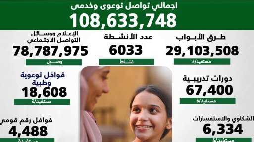 وأشار المجلس إلى تنفيذ اللجنة الوطنية، منذ بداية إنشائها، 6033 نشاطا استهدفت 108 ملايين و633 ألفا و748 تواصلا توعويا مع 62,118,497 سيدة و36,103,223 رجلا و10,412,028 طفلا.