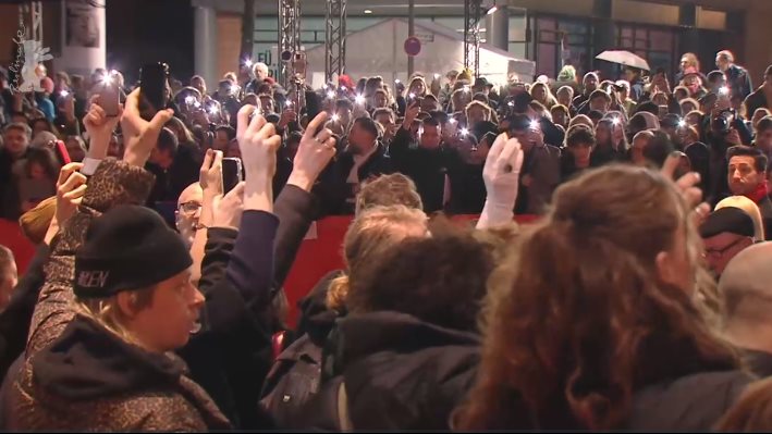 اقتحم عشرات المتظاهرين مهرجان برلين السينمائي في دورته الـ 74، المقامة حاليا في قصر برليناله، للهتاف على السجادة الحمراء للمهرجان وقبل الافتتاح الرسمي للمهرجان الليلة، ووثق عدد من الصحفيين والمصورين لحظة اقتحام المتظاهرين ورفعهم للهواتف الخاصة بهم والهتاف دعماً للديمقراطية.
