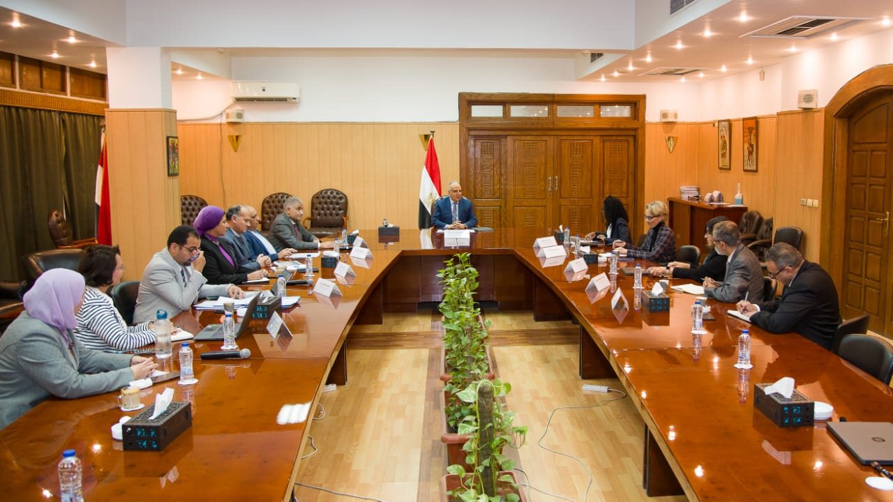 عقد الدكتور هانى سويلم، وزير الموارد المائية والرى، اجتماعاً مع عدد من مسئولي البنك الدولى لمتابعة موقف دراسة مشروع "المرونة المناخية من خلال التحول الزراعي والغذائي"، وموقف "الدراسة المتكاملة لترعة السويس"، والجاري تنفيذها بالتعاون مع البنك الدولى، والتباحث حول التنسيق بين الوزارة والبنك الدولى في مجال تطوير نظم الرى في مصر.