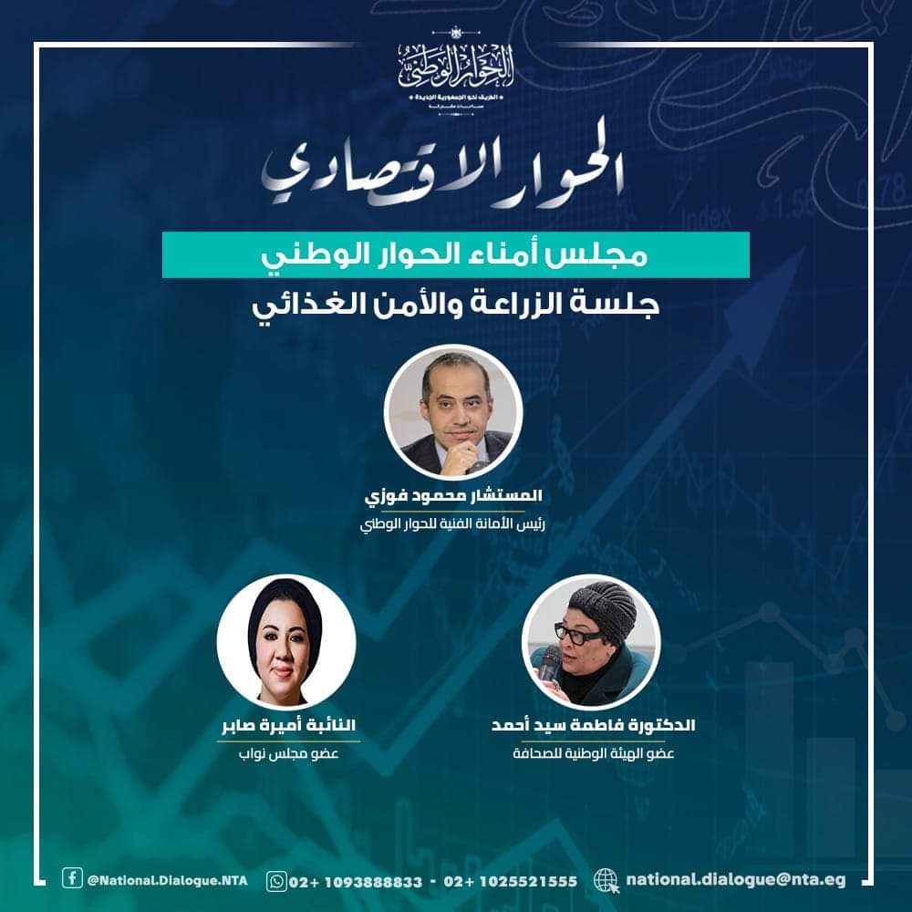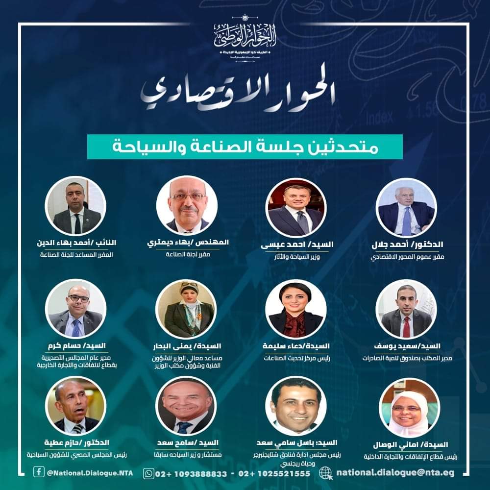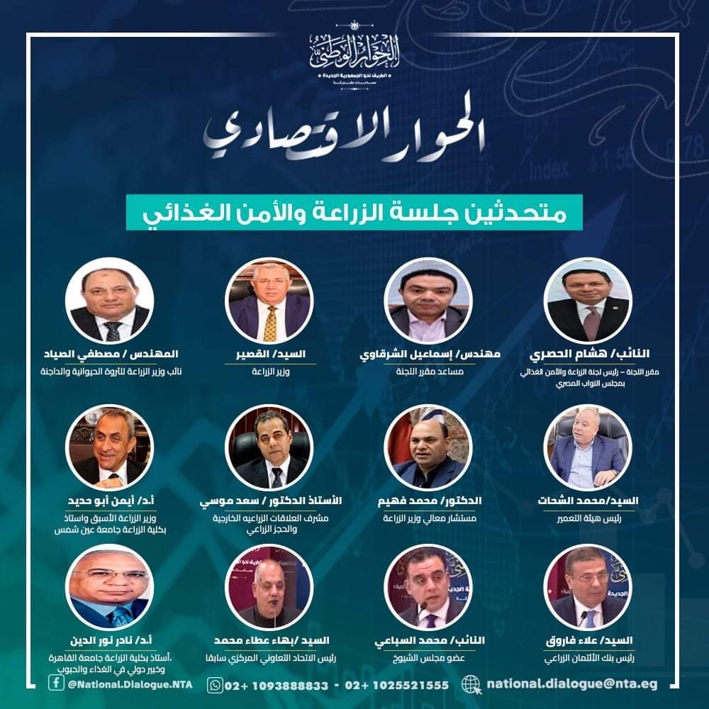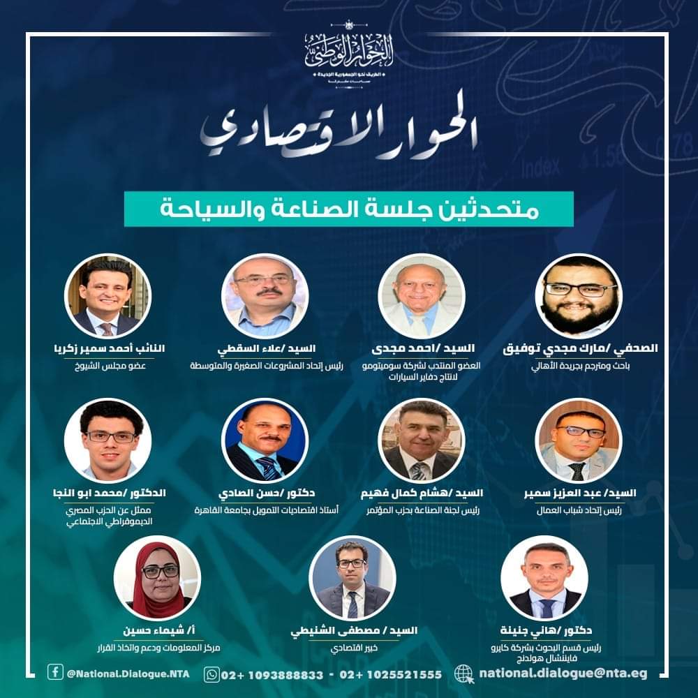 عقد الحوار الاقتصادي جلسته المتخصصة الثانية تحت عنوان "المعوقات التي تواجه الإنتاج والتصدير" ضمن لجان (الصناعة - الزراعة - السياحة) اليوم الاثنين الموافق 26 فبراير 2024، وذلك بمقر الأكاديمية الوطنية للتدريب بالشيخ زايد.