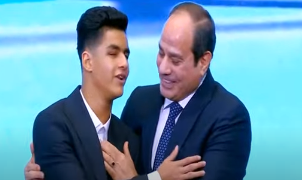 دار حوار كوميدي بين أحد أبطال ذوي الهمم والفنان كريم محمود عبد العزيز في إحدى فقرات قادرون باختلاف بحضور الرئيس السيسي .