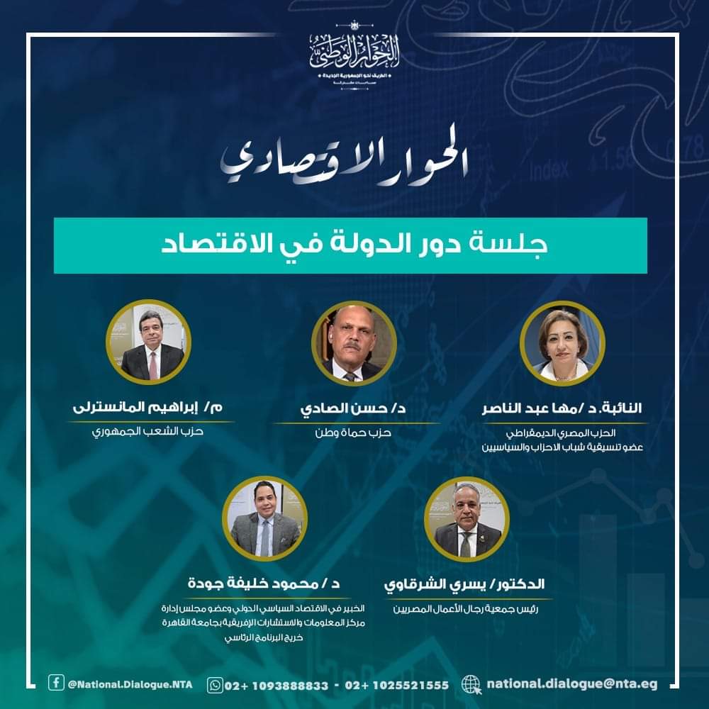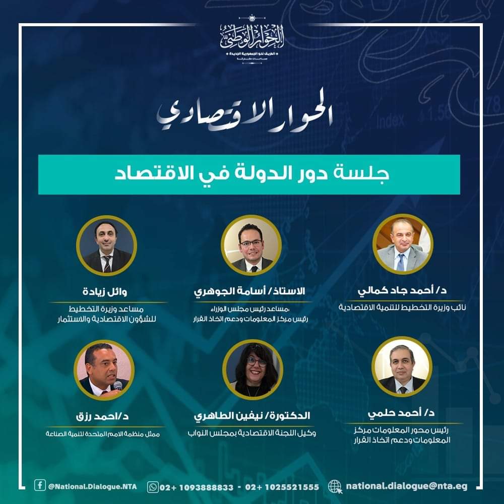 وناقشت الجلسة تأثير وثيقة ملكية الدولة، والسياسات التجارية، وأيضا آليات الاهتمام بالقطاع الصناعي لتطوير المنتج المحلي من حيث الكفاءة وتوطين الصناعة وتحسين كفاءة الأيدي العاملة، بالإضافة إلى دور الدولة في الفترة الراهنة في تطوير الاقتصاد من حيث الإدارة والحوكمة والاستراتيجية العامة للنهوض بالاقتصاد.