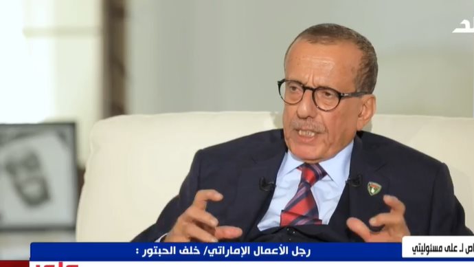 وقال خلف الحبتور في حواره مع الإعلامي أحمد موسى في برنامج " على مسئوليتي " المذاع على قناة " صدى البلد"، :" تم نقل مصابين فلسطينيين للعلاج في الإمارات ".