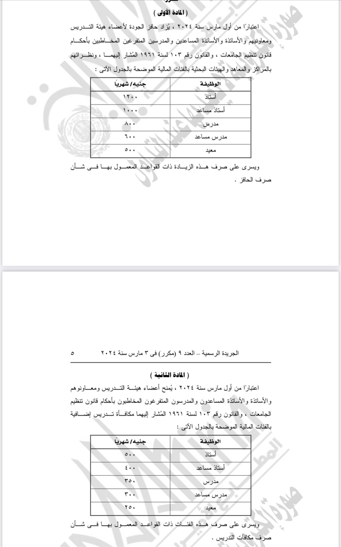 نشرت الجريدة الرسمية في عددها الصادر اليوم قرار رئيس مجلس الوزراء رئيس مجلس الوزراء رقم 630 لسنة ٢٠٢٤ وذلك بعد الاطلاع على الدستور ؛وعلى القانون رقم 103 لسنة 1961 بـشأن إعـادة تنظـيم الأزهـر والهيئـات يشملها ؛ من المال.