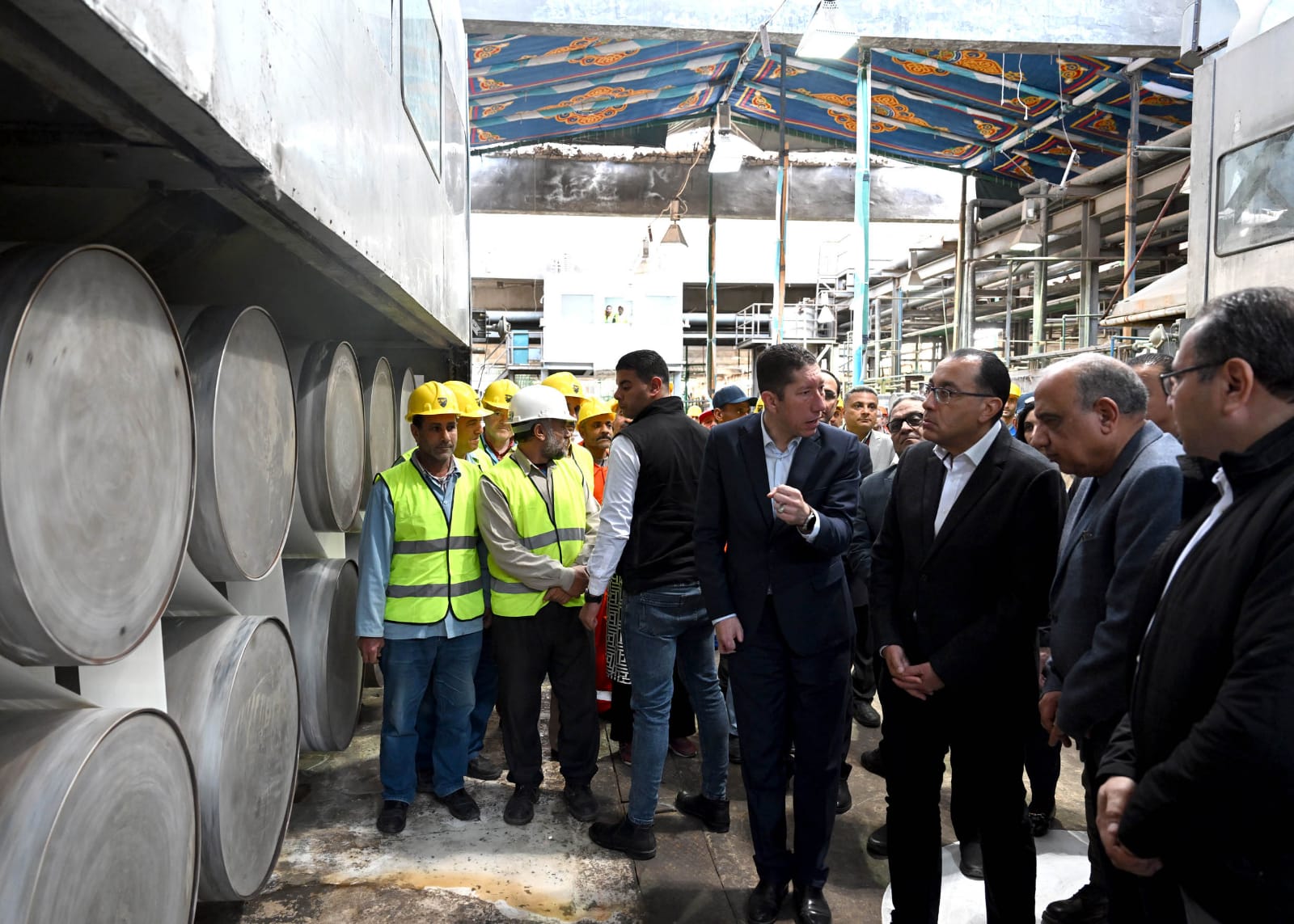 وخلال جولته، تفقد رئيس الوزراء لوحة نماذج الخامات والمنتجات، والتي تضمنت عرضًا لأهم مراحل العملية التصنيعية، ومن بينها: مصنع الخيوط، والورش، وعمليات الغزل والبلمرة، والغلايات، وساحات التخزين.