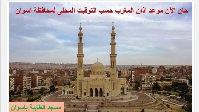 ومواقيت الصلاة فى محافظة أسوان، اليوم الخميس الموافق 14/3/2024، حسب ما أعلنت الهيئة المصرية العامة للمساحة على النحو التالى: