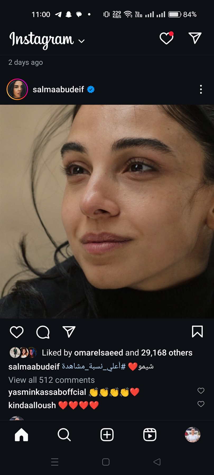 وظهرت سلمي في الصورة من كواليس مسلسل أعلي نسبة مشاهده وكتبت:"شيمو".