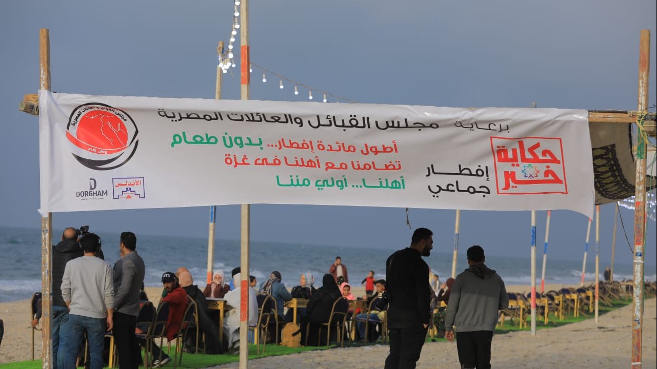 نظم مجلس القبائل والعائلات المصرية، أطول مائدة إفطار على ساحل مدينة العريش، اليوم الجمعة، «بدون طعام»، وذلك تضامنًا مع الشعب الفلسطيني في قطاع غزة والأحوال المعيشية الصعبة التي يتعرضون لها مع استمرار العدوان الإسرائيلي.