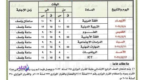 كما شددت وزارة التربية والتعليم والتعليم الفني ، على ضرورة أن تراعي مديريات التربية والتعليم أثناء إعداد جدول امتحانات الترم الثاني 2024 ، عدم عقد أي امتحانات ايام اعياد الاخوة المسيحيين وذلك خلال أيام 4 و 5 و 6 و7 مايو القادم.