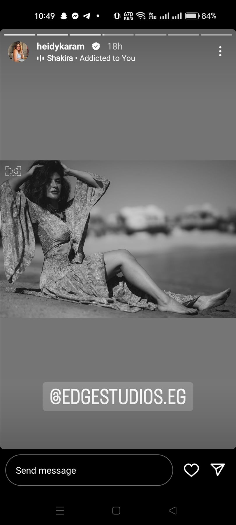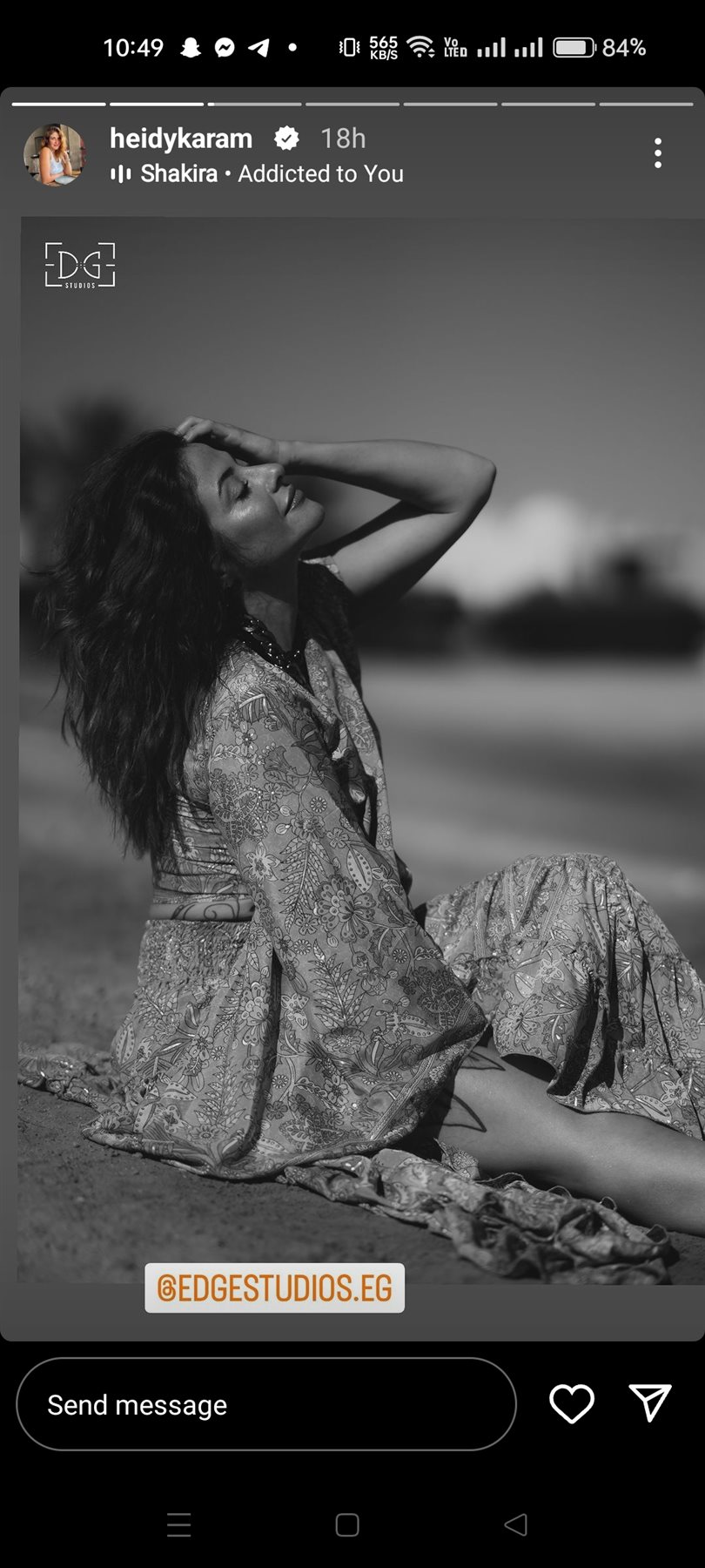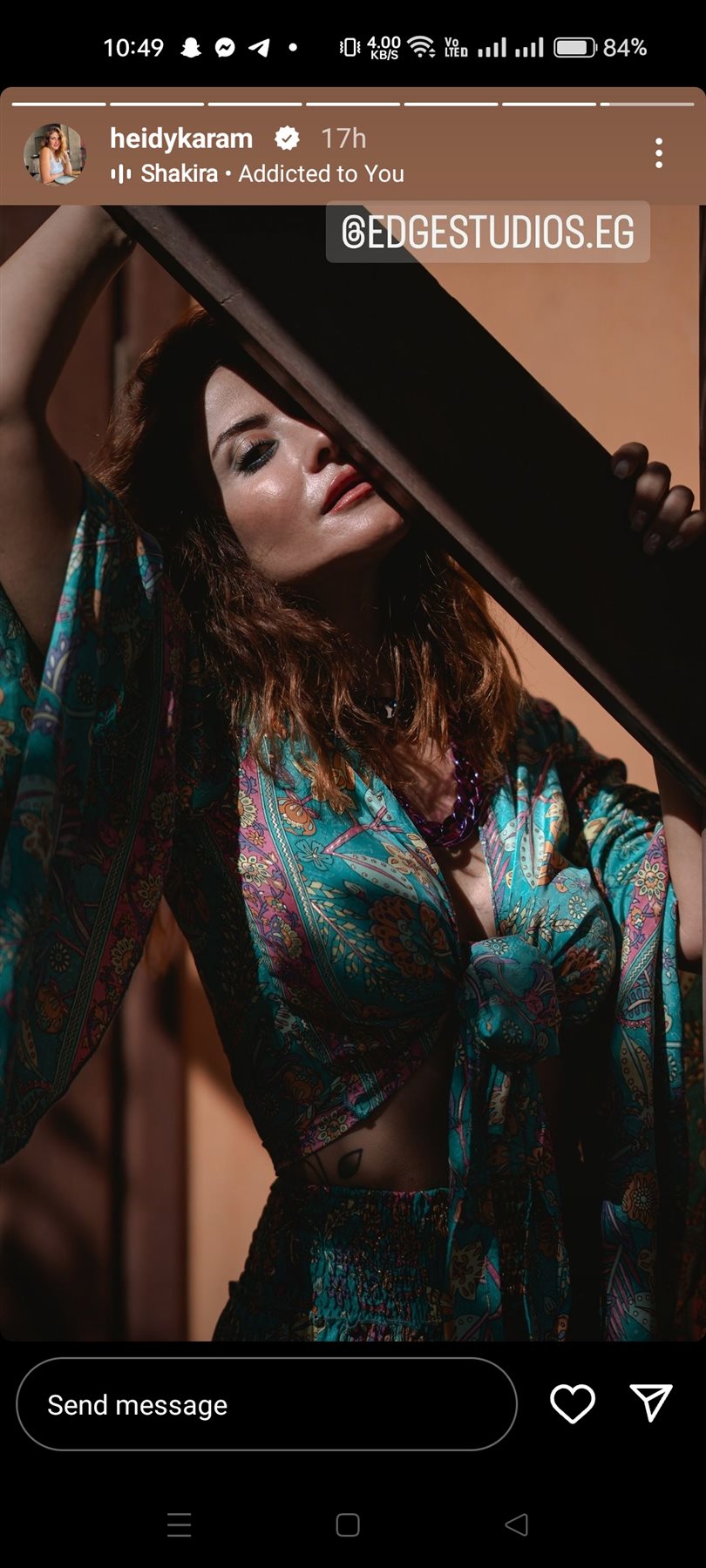 شاركت الفنانة هيدي كرم متابعيها صورة جديدة لها عبر صفحتها على موقع التواصل الاجتماعي لتبادل الصور والفيديوهات القصيرة إنستجرام خلال خاصية الأستوري.