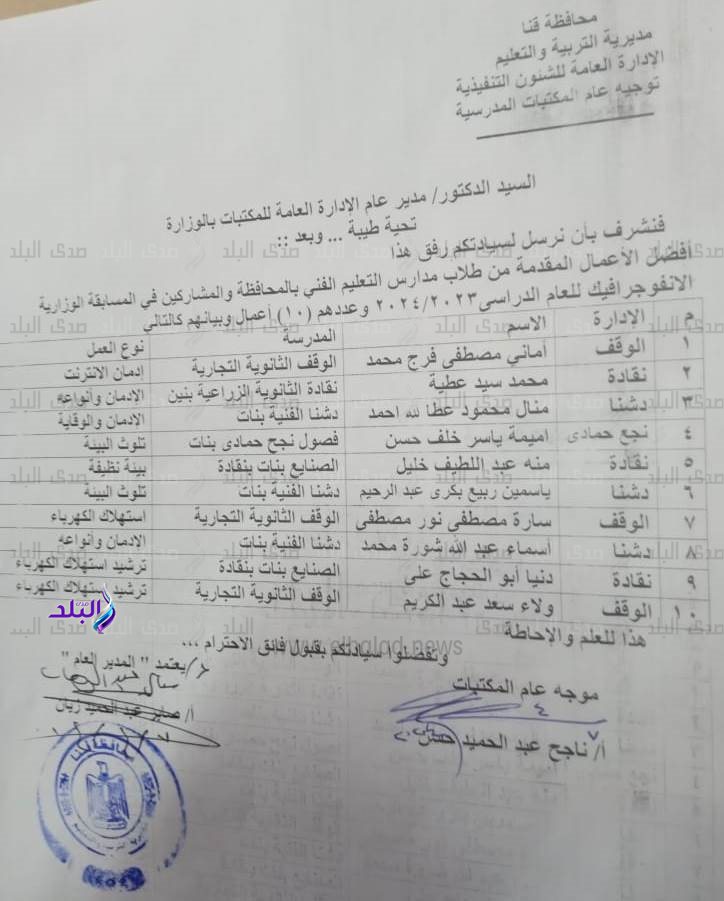 اعتمد الدكتور محمد السيد، وكيل وزارة التربية والتعليم بـ قنا ، جداول امتحانات الفصل الدراسي الثاني لصفوف النقل والشهادات العامة في ضوء القرارات الوزارية المنظمة لأعمال الامتحانات، وفي إطار توجيهات اللواء أشرف الداودى، محافظ قنا.