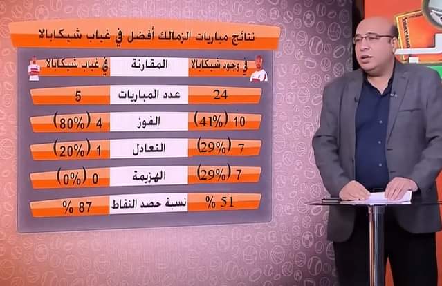 كشف الناقد الرياضي خالد طلعت عن إحصائية نتائج الزمالك في الموسم الحالي بعد التعادل مع دريمز الغاني في وجود شيكابالا وفي غيابه عبر صفحته على موقع التواصل الاجتماعي فيس بوك.