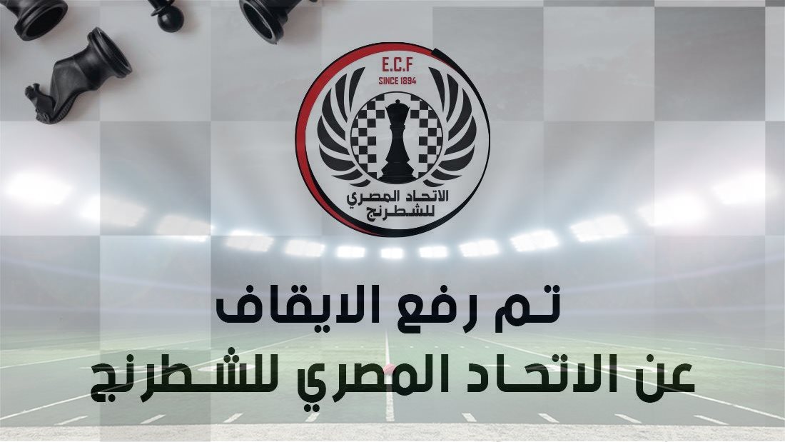 أعلن الاتحاد المصري للشطرنج برئاسة أحمد عدلي عن موافقة الاتحاد الدولي على رفع إيقاف النشاط عن مصر، الذي تم اتخاذه منذ شهر مارس الماضي بعد الأزمة التي شهدتها بطولة العالم للناشئين التي أقيمت في مصر خلال الفترة من 14 إلى 27 أكتوبر 2023.