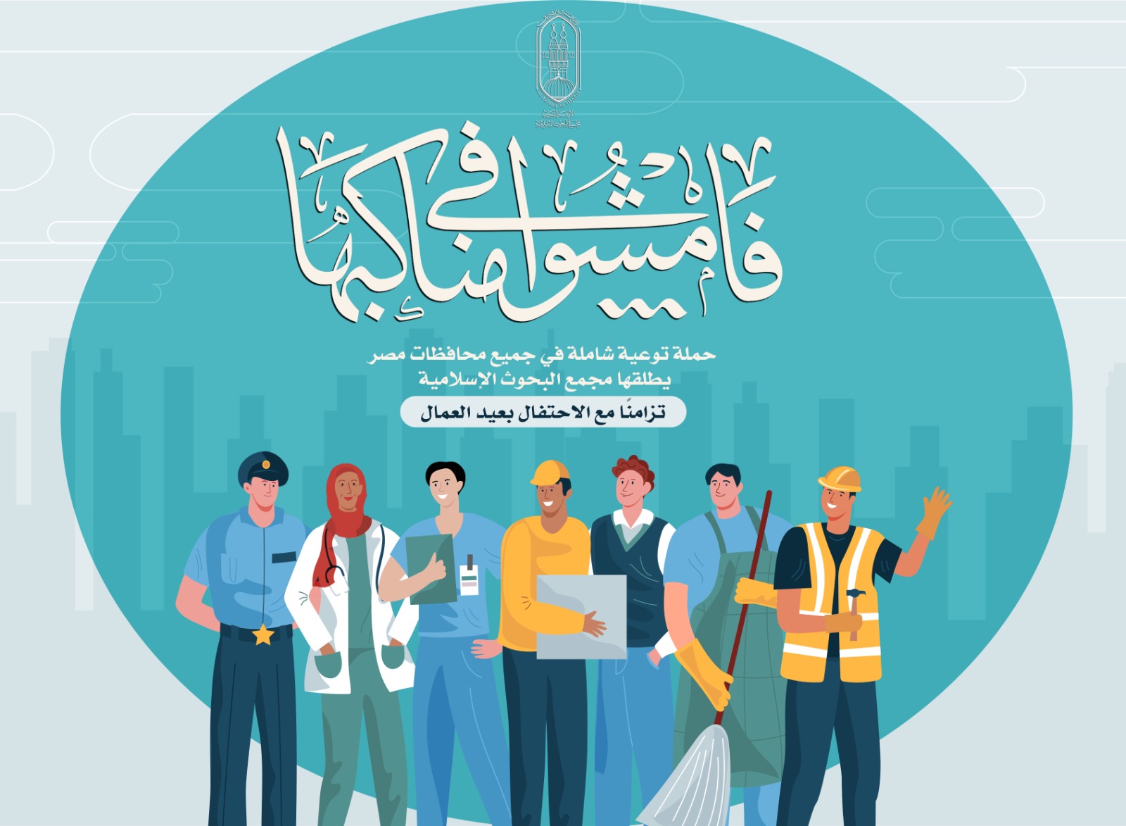 أعلن مجمع البحوث الإسلامية بالأزهر الشريف عن إطلاق حملة توعية شاملة في جميع محافظات الجمهورية تزامنًا مع الاحتفال بعيد العمال، حيث تُنفذ الحملة بعنوان: « فَامْشُوا فِي مَنَاكِبِهَا » بمشاركة وعاظ الأزهر وواعظاته، وذلك في إطار توجيهات فضيلة الإمام الأكبر أ.د/ أحمد الطيب - شيخ الأزهر بتكثيف جهود التوعية للمواطنين خاصة في المناسبات والمواسم المختلفة.