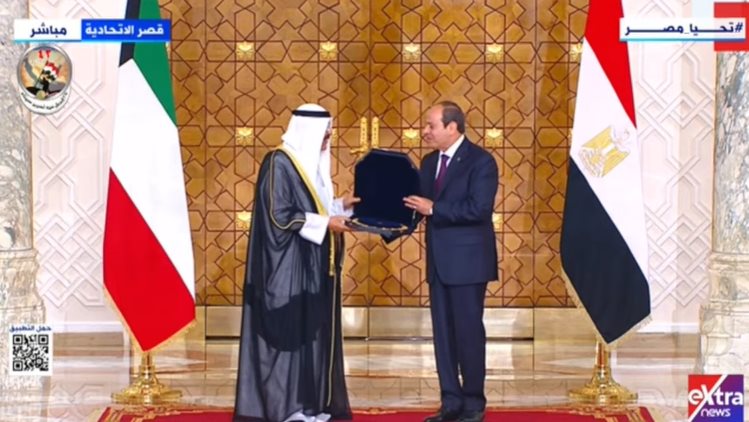 منح الرئيس عبدالفتاح السيسي، اليوم الثلاثاء، الشيخ مشعل الأحمد الجابر الصباح أمير الكويت قلادة النيل، تقديرا للمكانة المرموقة والمنزلة الرفيعة وتوثيقا لعرى الصداقة وروابط الوداد لأمير الكويت.
