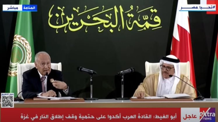 وقال أحمد أبو الغيط في كلمته في مؤتمر صحفي على هامش فعاليات القمة العربية المنعقدة بالبحرين،:"الحديث عن إرسال قوات عربية لحفظ السلام إلى غزة مصدره مصادر أمريكية أوروبية".