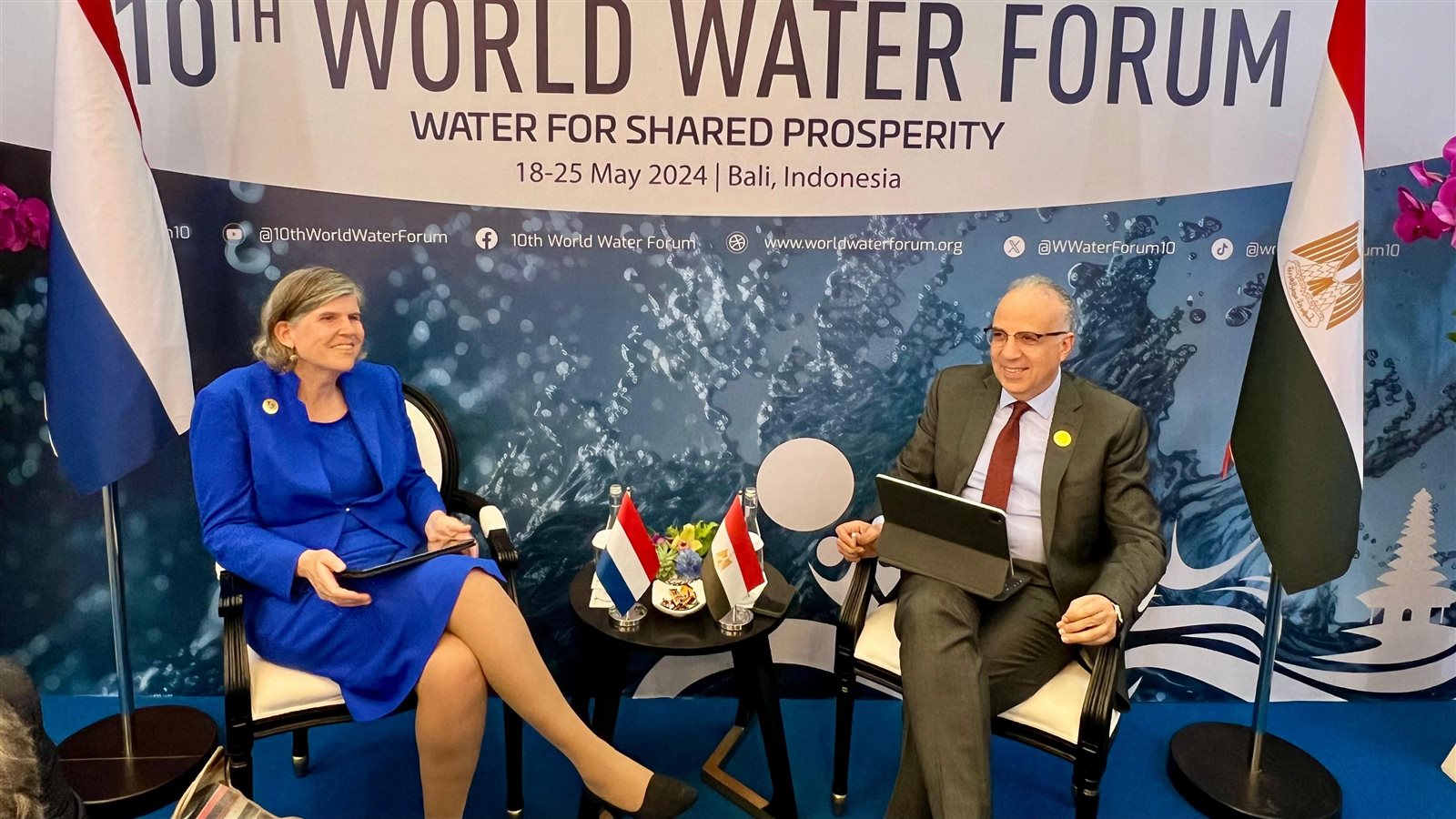 التقى الدكتور هانى سويلم وزير الموارد المائية والري بمايكا فان خينكين للتباحث حول سُبل تعزيز التعاون بين مصر وهولندا في مجال المياه وذلك على هامش فعاليات "المنتدى العالمي العاشر للمياه" والمنعقد فى بالى بدولة إندونيسيا.