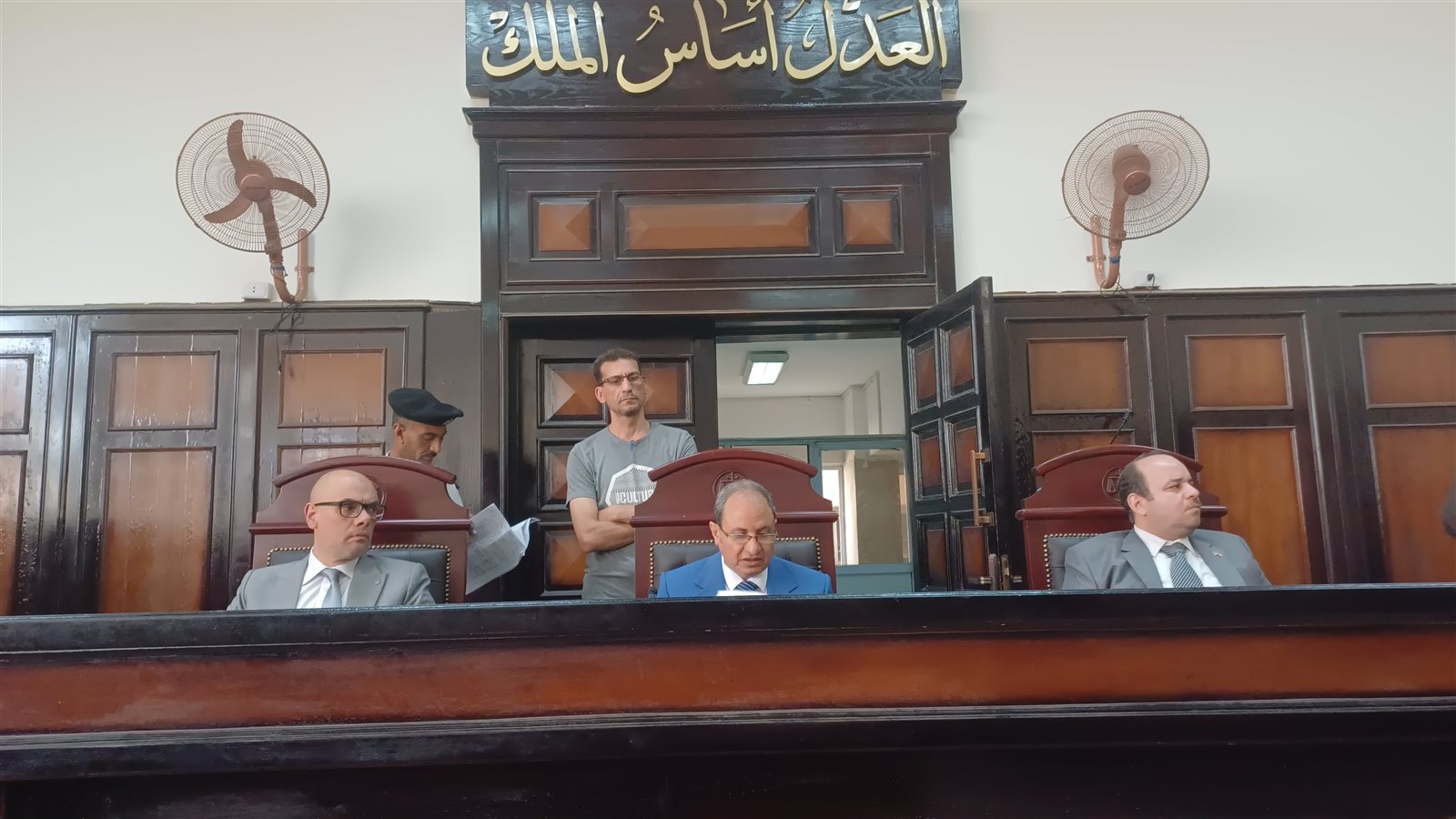 عقدت الجلسة برئاسة المستشار طارق محمود وصفي رئيس المحكمة وعضوية المستشارين أحمد عبد الناصر دبوس و محمد أبوسداح نائبا رئيس المحكمة وأمانة سر سيد علي بكر وناصر فؤاد.
