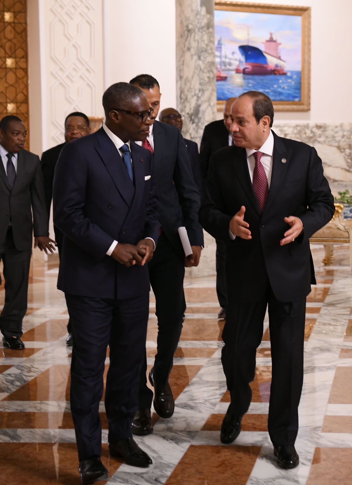 وقد استعرض نائب رئيس غينيا الاستوائية في ذلك الإطار مجريات زيارته لمصر، التي التقى خلالها برئيس مجلس الوزراء وعدد من الوزراء لبحث سبل دفع التعاون الاقتصادي، والارتقاء بمستوى التبادل التجاري بين البلدين، مشيداً بما شاهده من تقدم تنموي لافت في مصر، بشكل يمثل إضافة حقيقية وملموسة لقدرات وإمكانيات القارة الأفريقية.