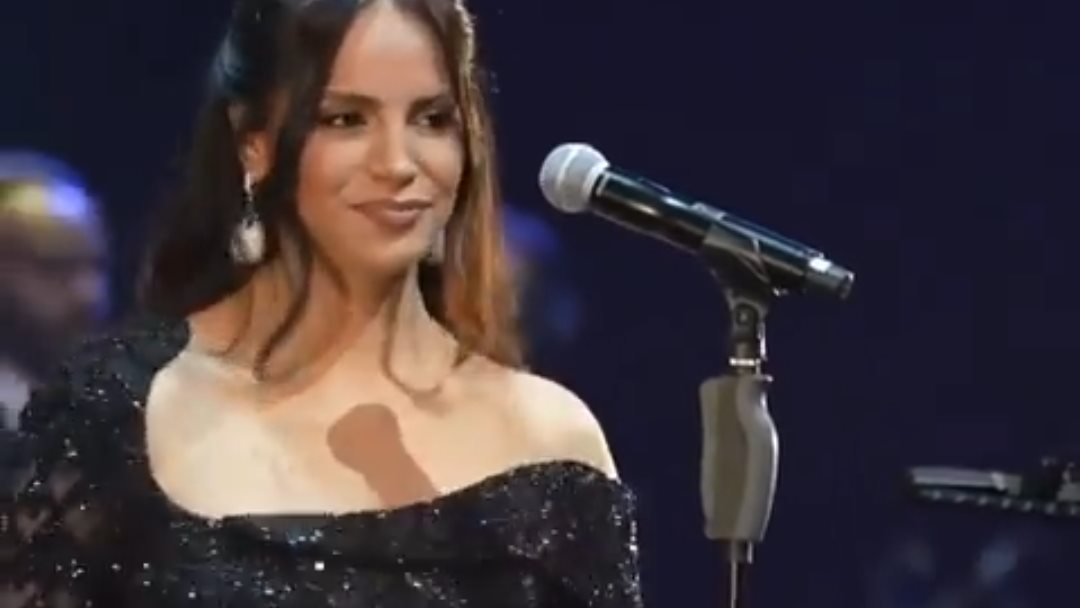 وارتدت آمال ماهر، خلال الحفل فستان أحمر طويل، أبرز أناقتها، وحرصت على توجيه الشكر لجمهورها السعودي في بداية الحفل.