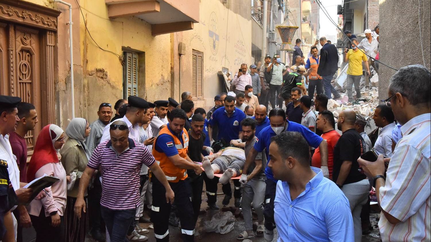 فيما دفعت مديرية الصحة بـ 10 سيارات إسعاف واستعانة المحافظة بمعدات الإنقاذ السريع التابعة لمركز الفتح لسرعة رفع الأنقاض والبحث عن باقي سكان العقار .