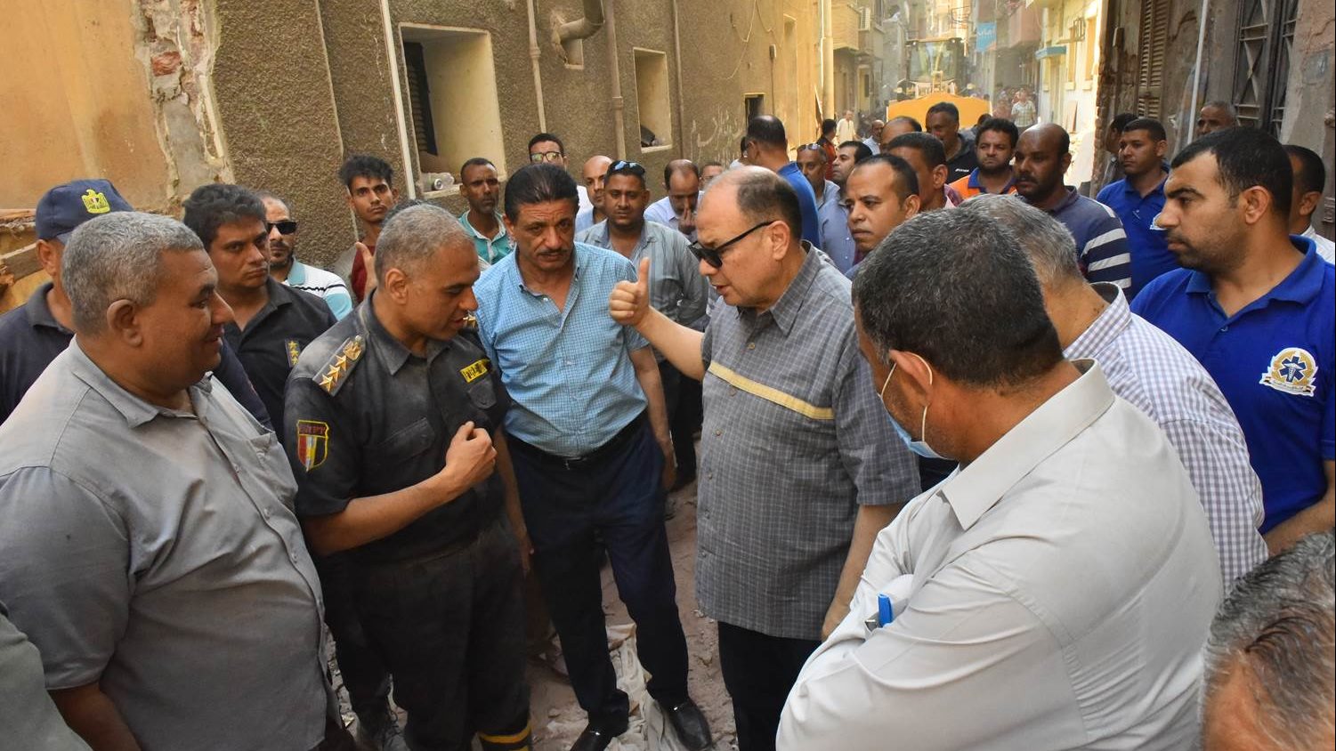 فيما دفعت مديرية الصحة بـ 10 سيارات إسعاف واستعانة المحافظة بمعدات الإنقاذ السريع التابعة لمركز الفتح لسرعة رفع الأنقاض والبحث عن باقي سكان العقار .