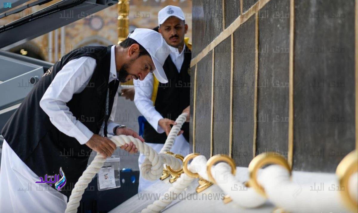 تشهد الكعبة المشرفة تغيير كسوتها على يد 159 فنياً وصانعاً، وسيتم إنزال الكسوة القديمة للكعبة، وإلباسها الكسوة الجديدة، والمكونة من أربعة جوانب مفرقة وستارة الباب، حيث سيُرفع كل جنب من جوانب الكعبة الأربعة على حدة، إلى أعلى الكعبة المشرفة تمهيداً لفردها على الجنب القديم