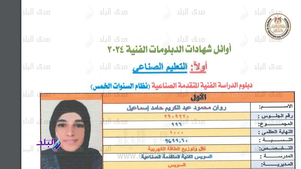 ارتفعت الزغاريد في منزل اسماء فكيه عبد السميع الأولى على الجمهورية في دبلوم المدارس الفنية التجارية نظام الثلاث سنوات والحاصلة علي مجموع 579.5 درجة بنسبة 99.9٪.