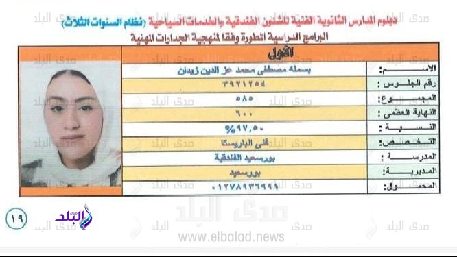 هذا ولم تكتف محافظة بورسعيد بحصد الطالبة بسملة مصطفي عز الدين للمركز الأول جمهوري لدبلوم المدارس الثانوية الفندقية نظام ٣ سنوات فنجحت فى اقتناص ٥ مراكز أخرى فى ترتيب العشر الأوائل.