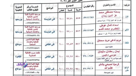 حرصت نجلاء إدوار مقررة المجلس القومى للمرآة فرع بورسعيد على تكريم الطالبة بسملة مصطفى عز الدين زيدان ، الأولى على مستوى الجمهورية بدبلوم المدارس الثانوية الفنية للشئون الفندقية والخدمات السياحية "نظام 3 سنوات"، و التى حصلت على مجموع 585 من 600 بنسبة 97.5%.