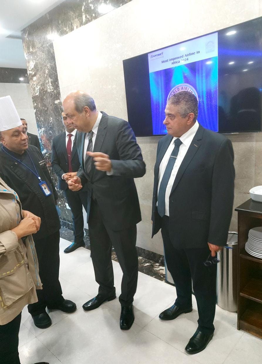 هذا وتضمنت الجولة متابعة أخر أعمال التوسعه بمبنى الركاب ٣ و تطورات الأعمال الإنشائية للاستراحات الجديدة لعملاء مصر للطيران من درجة رجال الأعمال والتي تم إنشائها على مساحة ٢٤٠٠ متر مربع؛ والمقرر لها أن تكون على طابقين وتجهيزها على أعلى مستوى كي تضاهي مستويات الاستراحات العالمية الكبري، بالإضافة إلى متابعة إجراءات خط سير الركاب في مرحلتي السفر والوصول.