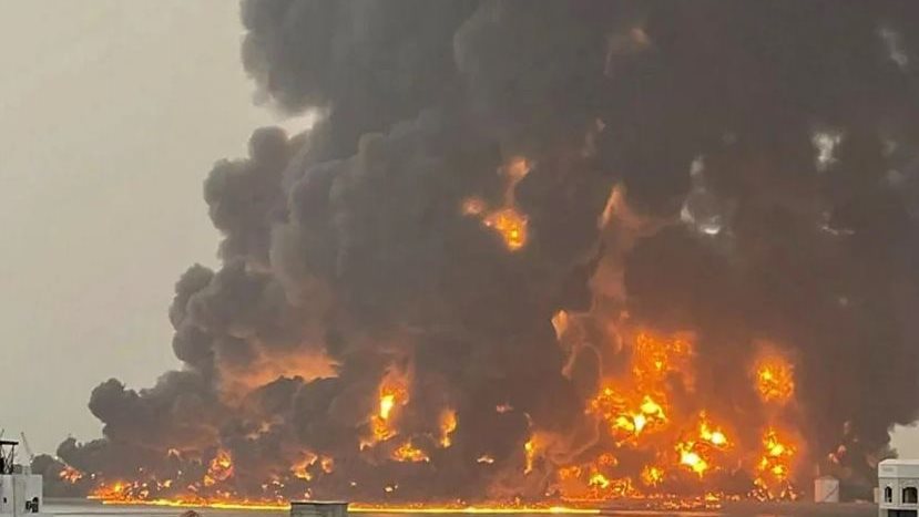 إضافة إلى ذلك، تعرضت مستودعات النفط لهجوم أدى إلى نشوب حريق كبير في الميناء.