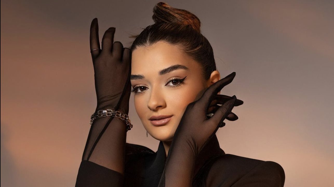 ومن الناحية الجمالية تعتمد على وضع الماكياج بلمسات بسيطة من الألوان الهادئة، تاركة خصلات شعرها منسدلة علي كتفيها.