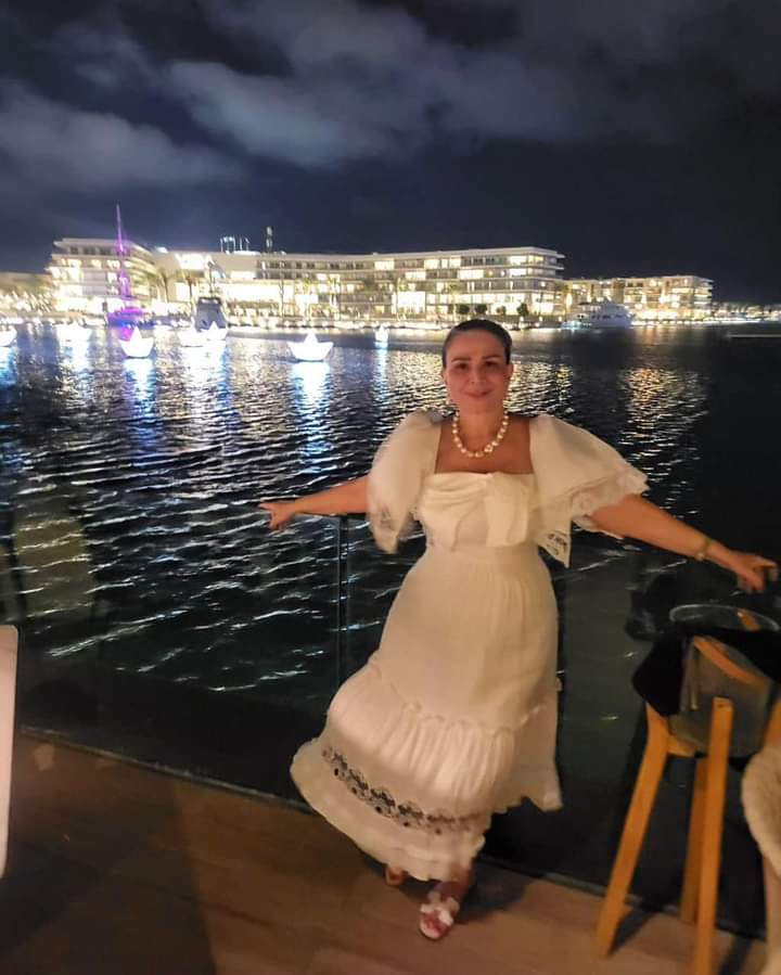 وتألقت إلهام شاهين في الصور بإطلالة شبابية كعادتها، حيث ارتدت فستانا ابيض واسع مبهج ذا اكمام قصيرة ومفتوح الصدر واتسم التصميم بالرقي الذي كشف عن رشاقتها.