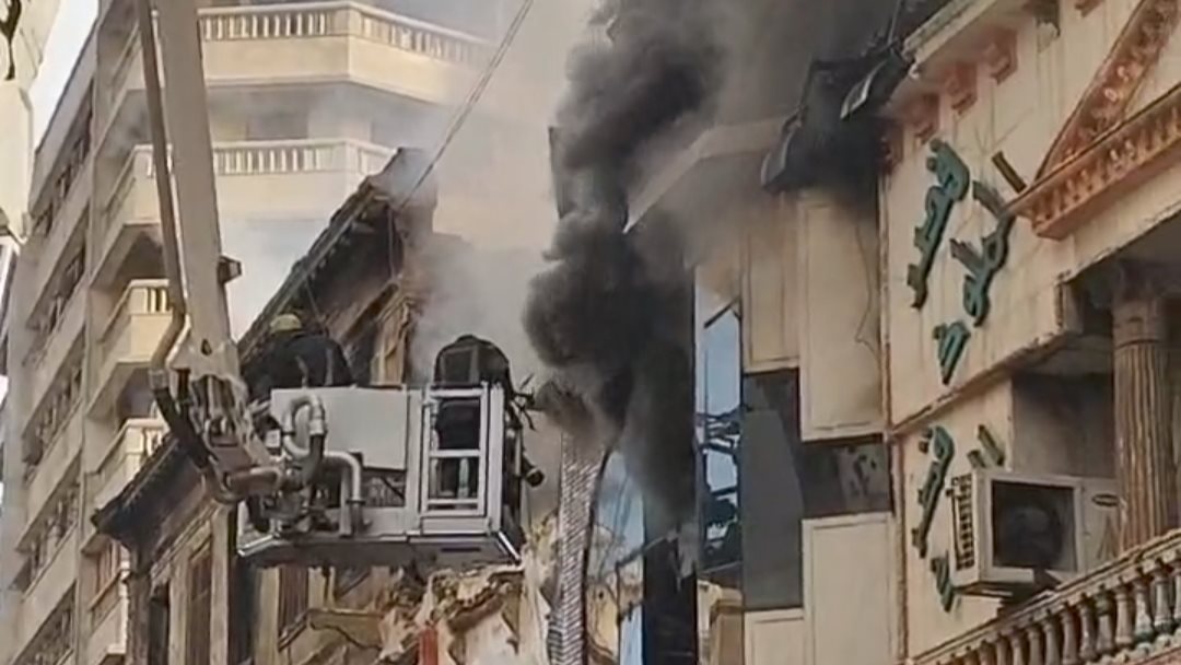 واشتعلت النيران في جزء من عقار العتبة مرة أخرى بعد إخماد النيران حيث تتجدد النيران خلال إجراء عملياتالتبريد.
