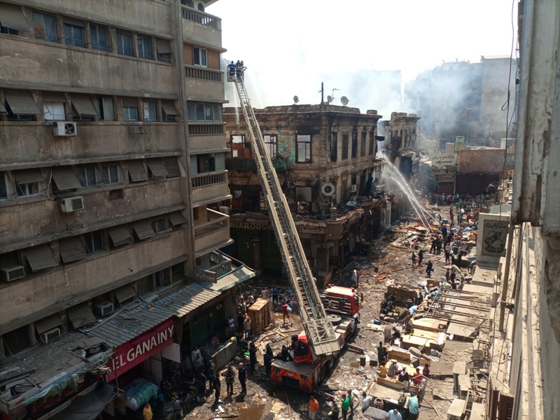 واستعانت قوات الحماية المدنية بالقاهرة، إلى جانب سيارات الإطفاء، بجميع المعدات الثقيلة من طلمبات حريق وسلالم ومعدات الرافعة الهيدروليكية للسيطرة على الحريق.