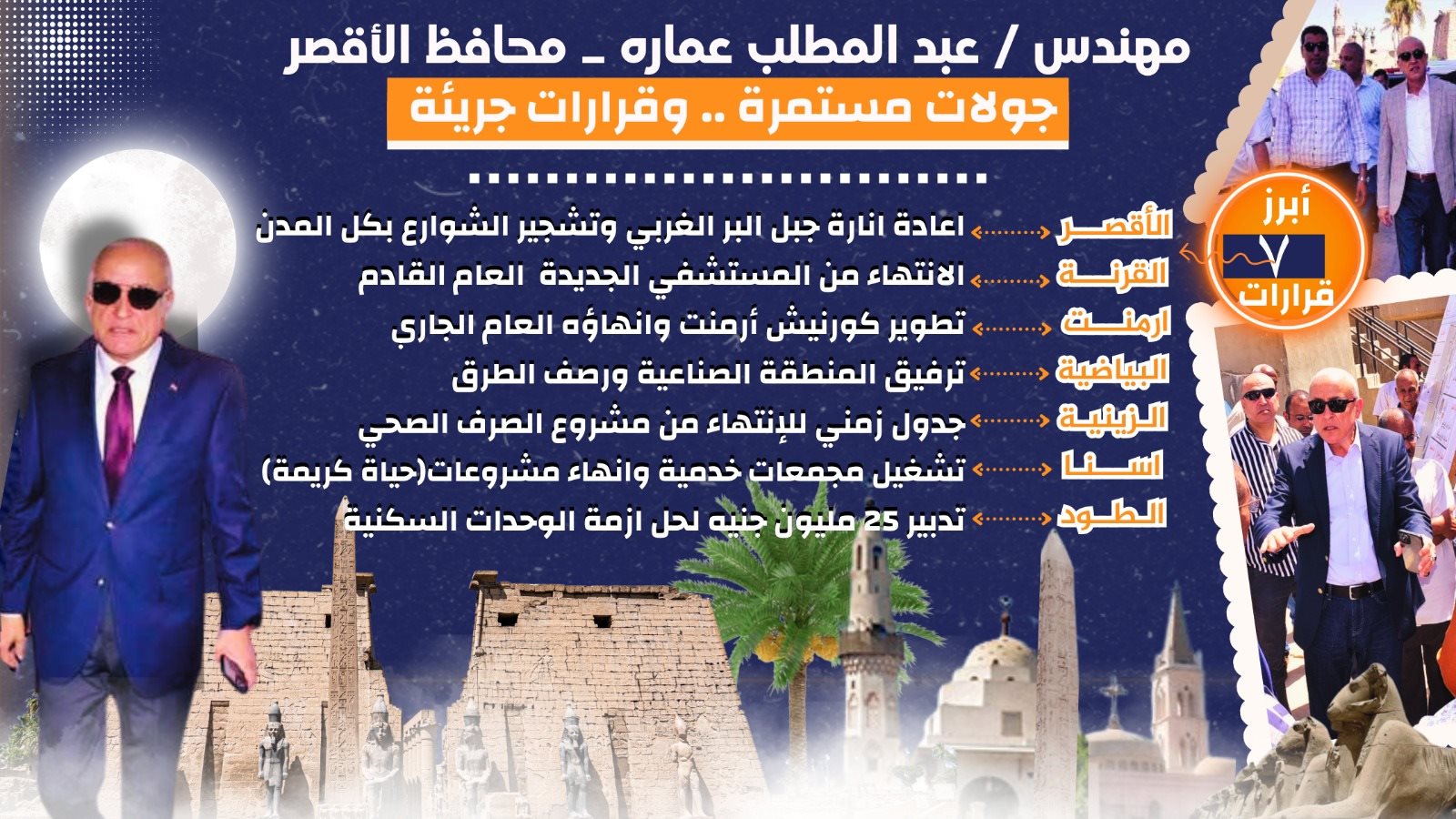 ياتى ذلك بناء على توجيهات المهندس عبد المطلب عماره محافظ الأقصر لرؤساء المراكز والمدن بمتابعة مشروعات مبادرة حياة كريمة .
