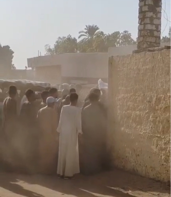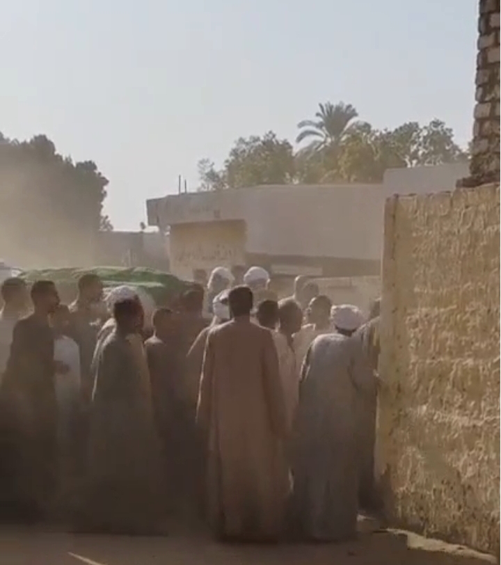 وفي بداية القرية، وقف عدد من الرجال والشباب على جانب الطريق في انتظار قدوم الجثامين. وفي أحد الشوارع الجانبية بجانب المقابر، تم تخصيص مكان لعزاء السيدات. وعند وصول سيارات نقل الموتى إلى القرية، كانت هناك حالة من الرهبة الكبيرة بين الجميع، ثم توجه المئات إلى الملعب الموجود في القرية لتأدية صلاة الجنازة على الجثامين الثلاثة، قبل أن يتم نقلهم إلى المقابر لتشييعهم إلى مثواهم الأخير.
