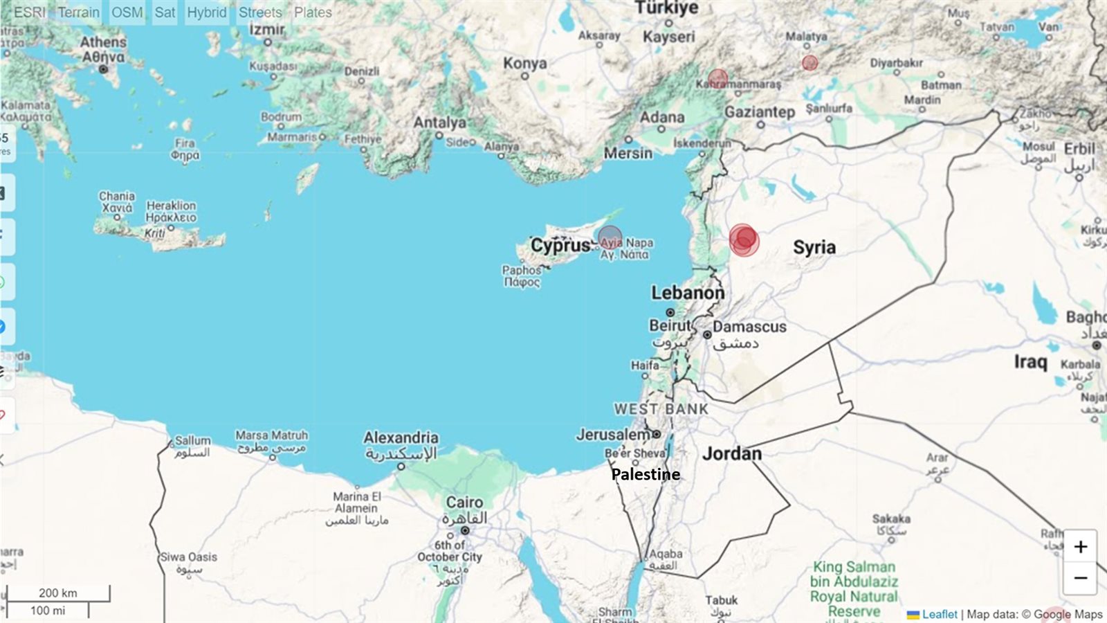 وبين المركز، في بيان له - بحسب وكالة الأنباء السورية سانا - أن الهزات تراوحت درجاتها بين 1.9 و2.7 على مقياس ريختر، ووقعت في أوقات مختلفة في مناطق شرق حماة بـ 22 كم و24 كم وشمال غرب اللاذقية بـ 30 كم وفي لواء إسكندرون غرب إدلب بـ 42 كم وشمال غرب إدلب بـ 67 كم.