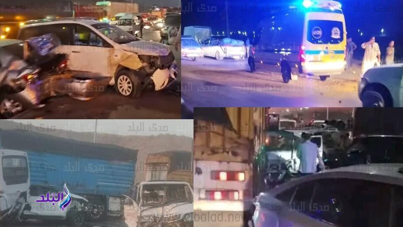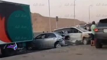 تصادم ١٢ سيارة على الطريق الدائري في الجيزة