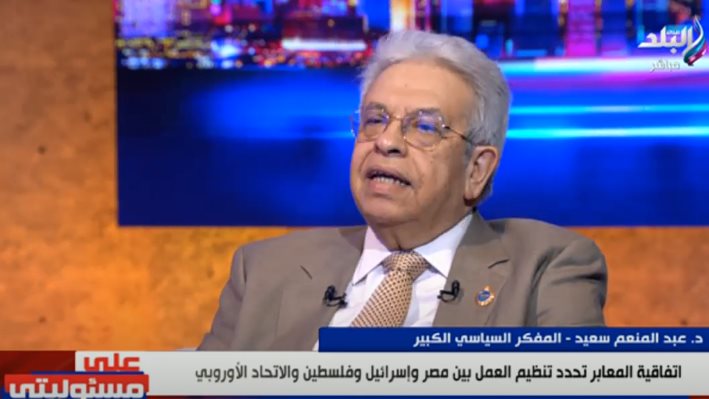 وقال عبدالمنعم سعيد خلال لقائه مع الإعلامي أحمد موسى، مقدم برنامج «على مسئوليتي»، عبر قناة «صدى البلد»، إنه ليس خبيرا في حماس وتفاجئ كحال الكثيرين بما حدث في 7 أكتوبر الماضي.