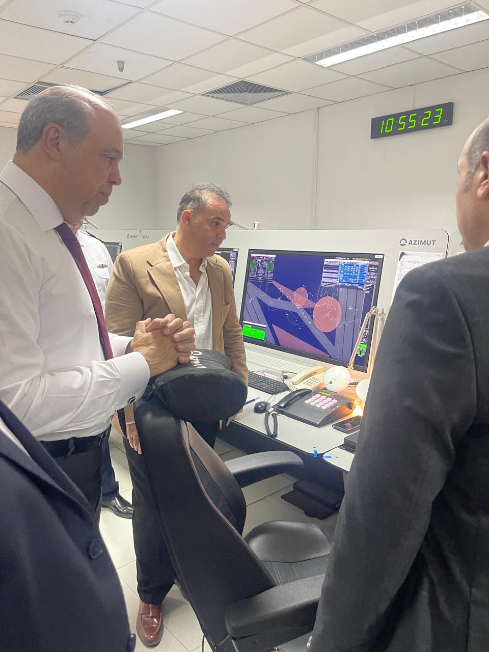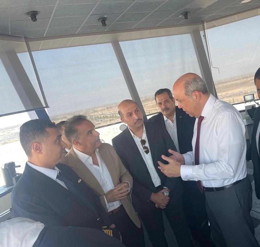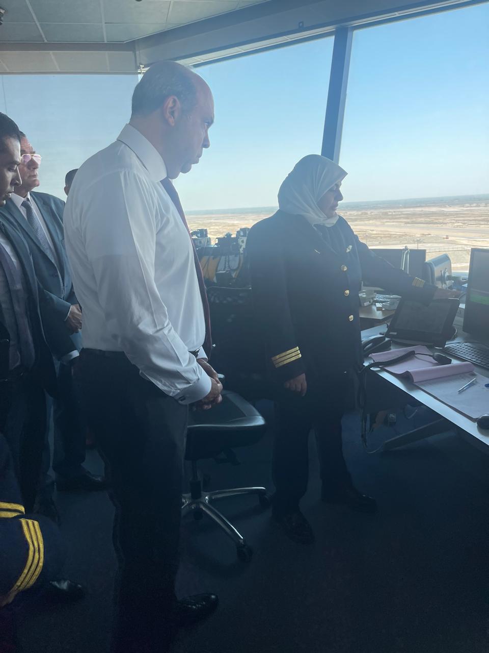 وتوجه وزير الطيران الى برج المراقبة الجوية ومبني الرادار حيث كان في استقباله الكابتن أحمد الأشرم مدير عام الملاحة الجوية بالمطار.